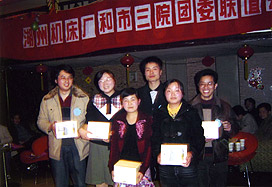 3月8日,公司團委與市三院團委舉行了一次聯誼活動。我公司參加這次活動的主要以技術開發支部及近年進廠的年輕大學生為主,以男性為主,市三院的代表以女性為主。這次活動參賽人員30人,其余觀眾20多人,參賽選手共分5組?;顒拥膬热葜饕忻裳郛媹D、夾豆子、必答題、風險題等九個項目經過激烈競爭,3號桌“3+3隊”獲得本次聯誼活動的第一名,并從2號桌中評選出一對最佳默契表演獎。
